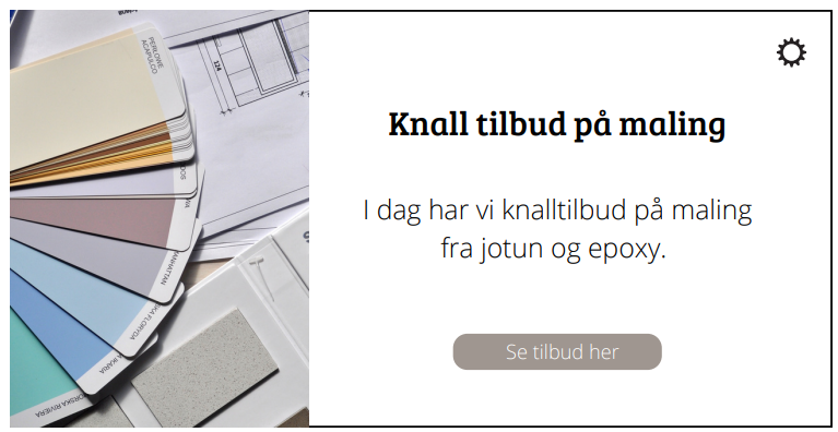 Eksempel pĂ„ PopUp — bilde til venstre. Algoritmen vil tilpasse bildet forskjellige enheter, og bildet kan bli kuttet. Ikke bruk tekst i bildet!